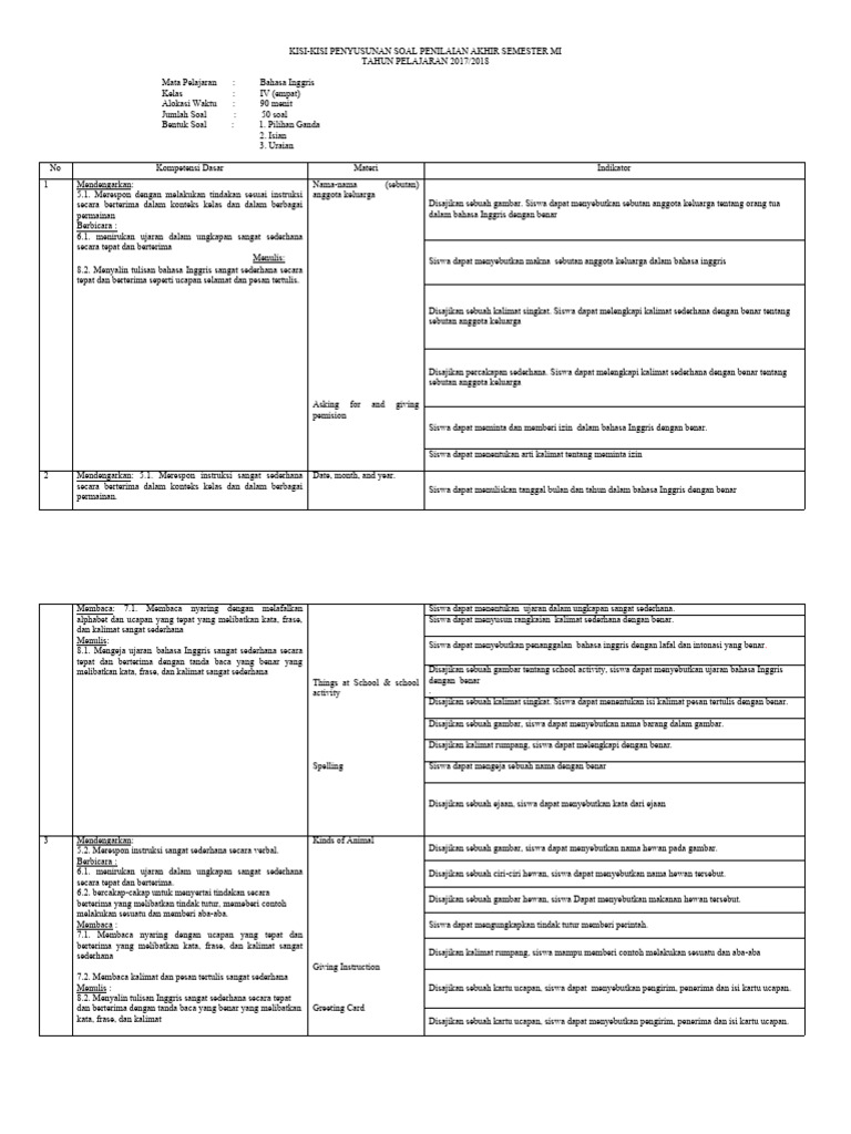 Artikel ini akan mengupas tuntas kisi-kisi soal Bahasa Inggris UKK kelas 4, memecahnya berdasarkan kompetensi dasar dan indikator penilaian yang umum digunakan. Dengan pemahaman yang mendalam, siswa dapat belajar dengan lebih terarah, orang tua dapat memberikan dukungan yang tepat, dan guru dapat merancang pembelajaran yang lebih relevan.