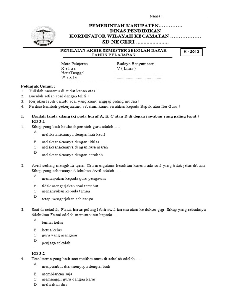 Artikel ini akan mengupas tuntas kisi-kisi soal yang kemungkinan besar akan muncul dalam UTS Budaya Banyumasan kelas 4 semester 2. Dengan pemahaman yang mendalam mengenai cakupan materi dan jenis soal, siswa dapat mempersiapkan diri dengan lebih efektif, dan guru dapat merancang instrumen evaluasi yang lebih terarah dan komprehensif. Mari kita selami bersama berbagai elemen budaya Banyumasan yang perlu dikuasai oleh para siswa.